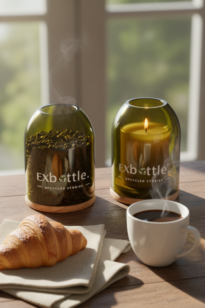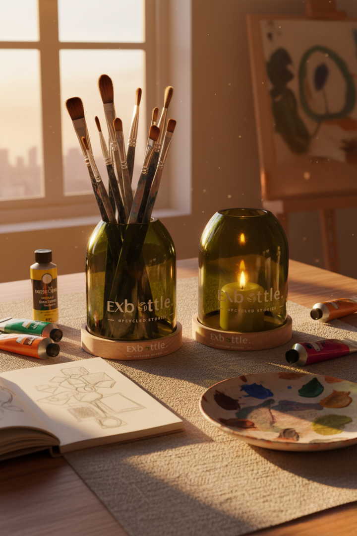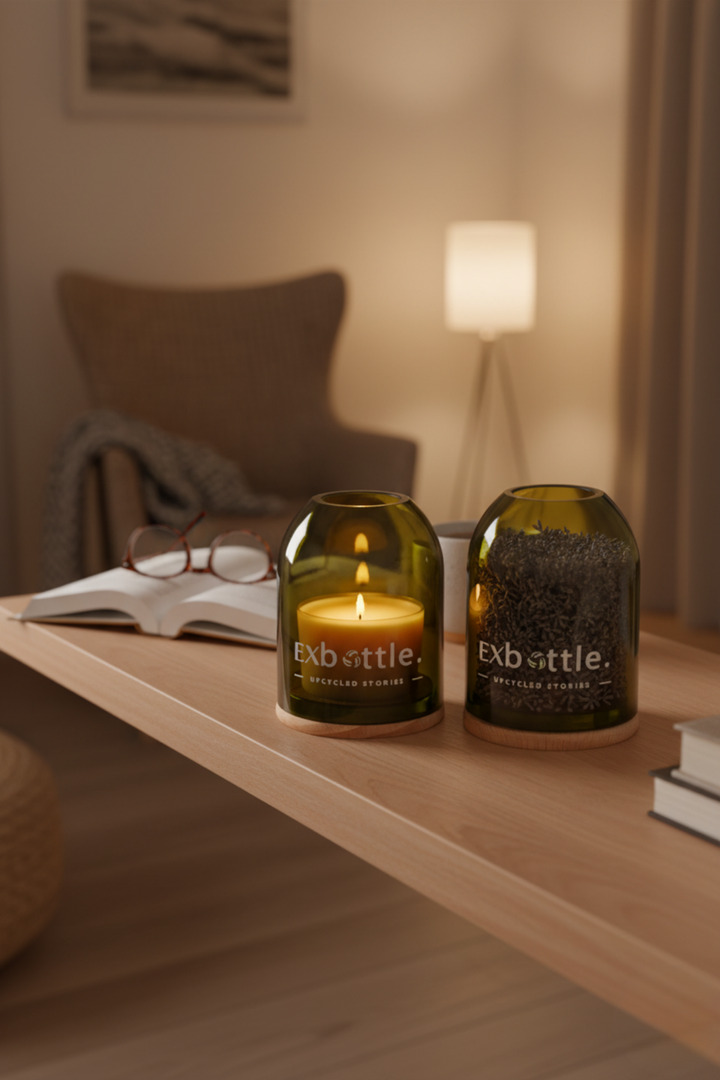 Exbottle Straight-Cut Upcycled Duo Set — Handcrafted Candle, Vase, Tumbler & Decorative Storage Set